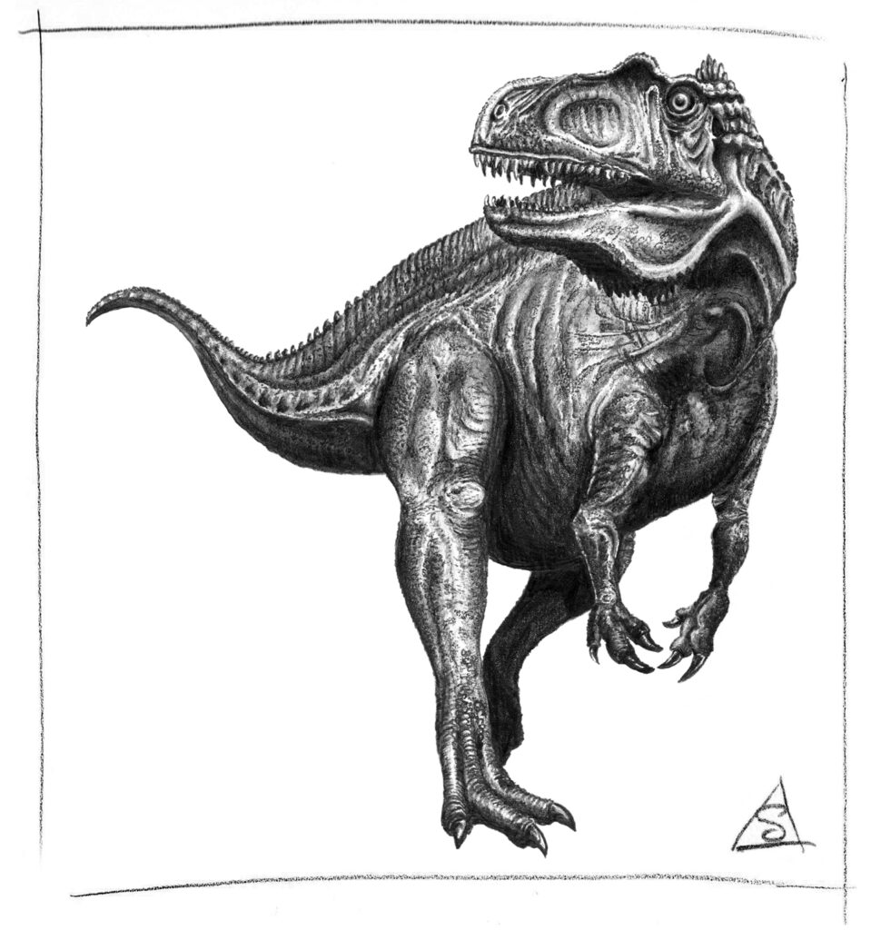 Secondly, there is no conclusive evidence, as far as I am aware, to categorically prove or disprove the group behaviour of the large theropod carnivores. It may be that they grouped together at certain times of year, or to bring down great prey, but were otherwise solitary; or they may have grouped together for mutual benefit when young, only to become more solitary when grown. Research continues and it is truly fascinating. With regards to my story, as the mapusaurs and giganotosaurs worked in packs (possibly due to a springtime breeding cycle), I thought it would be nice to describe another, similar animal with a lifestyle at the opposite end of the spectrum – a ‘lone wolf’, if you will.
